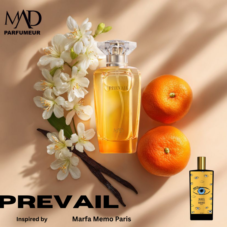 Mad Prevail הוא בושם שמשדר ביטחון עצמי רגוע. הוא נפתח באנרגיה הדרית ורעננה, מתפתח ללב פרחוני רך ונשי, ומסתיים בבסיס עצי וחמים שמשאיר תחושת רוגע ועוצמה עדינה. מושלם לנשים שמעדיפות נוכחות עדינה אך מורגשת.