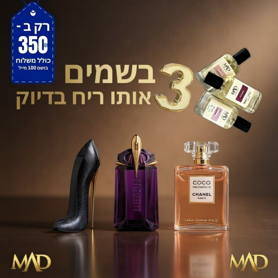 שלישייה חלומית של ניחוחות נשיים שמובילים את עולם הבישום – עכשיו בגירסה האלטרנטיבית של MAD עם ריכוז גבוה ועמידות מרשימה: